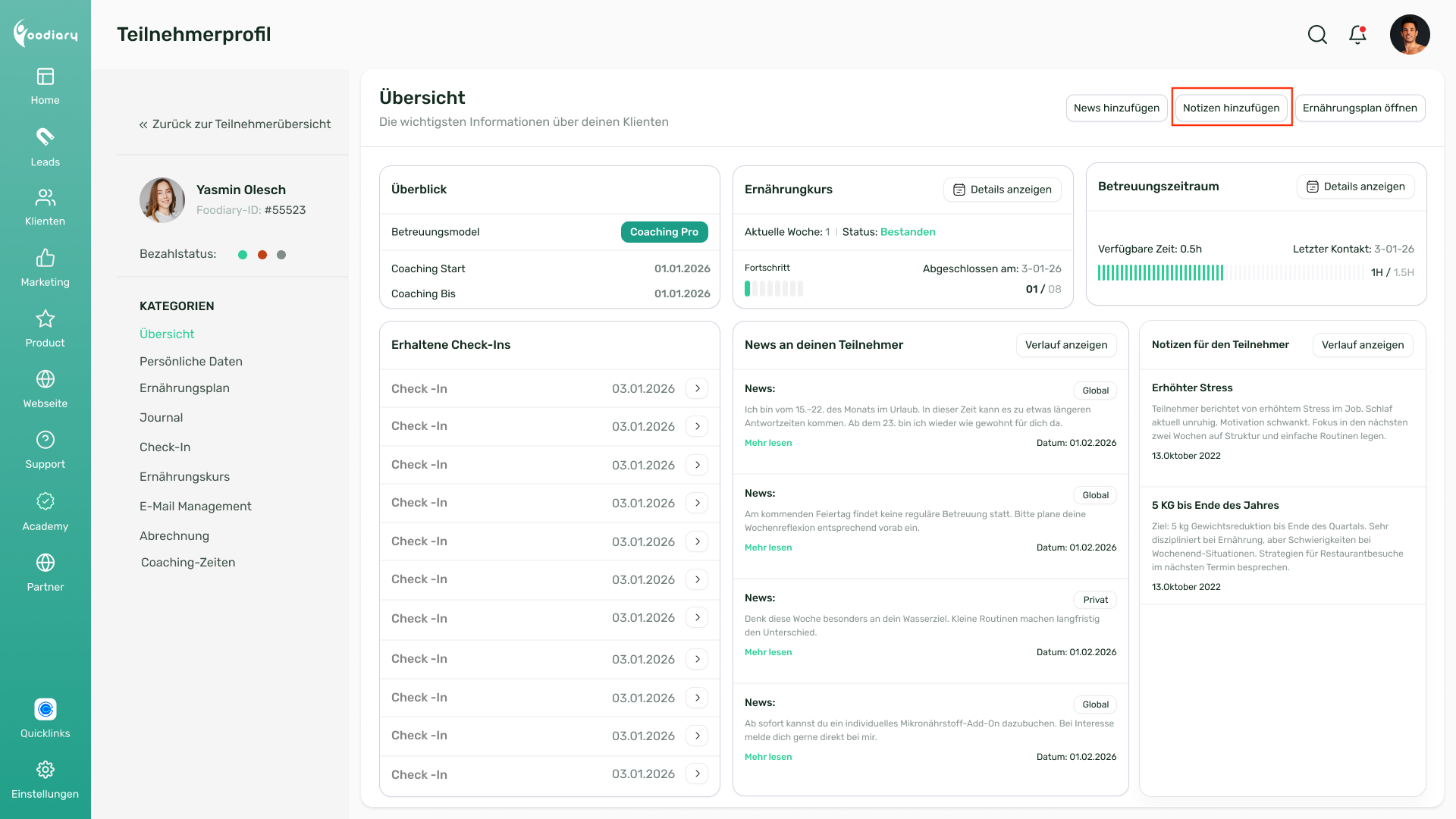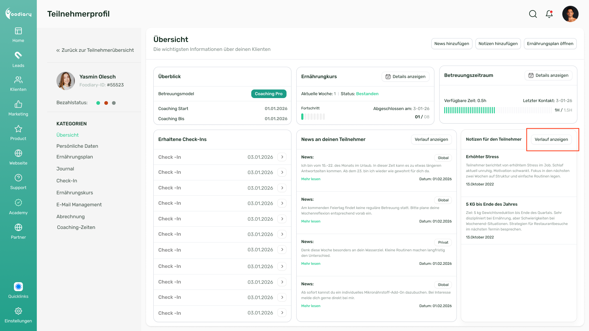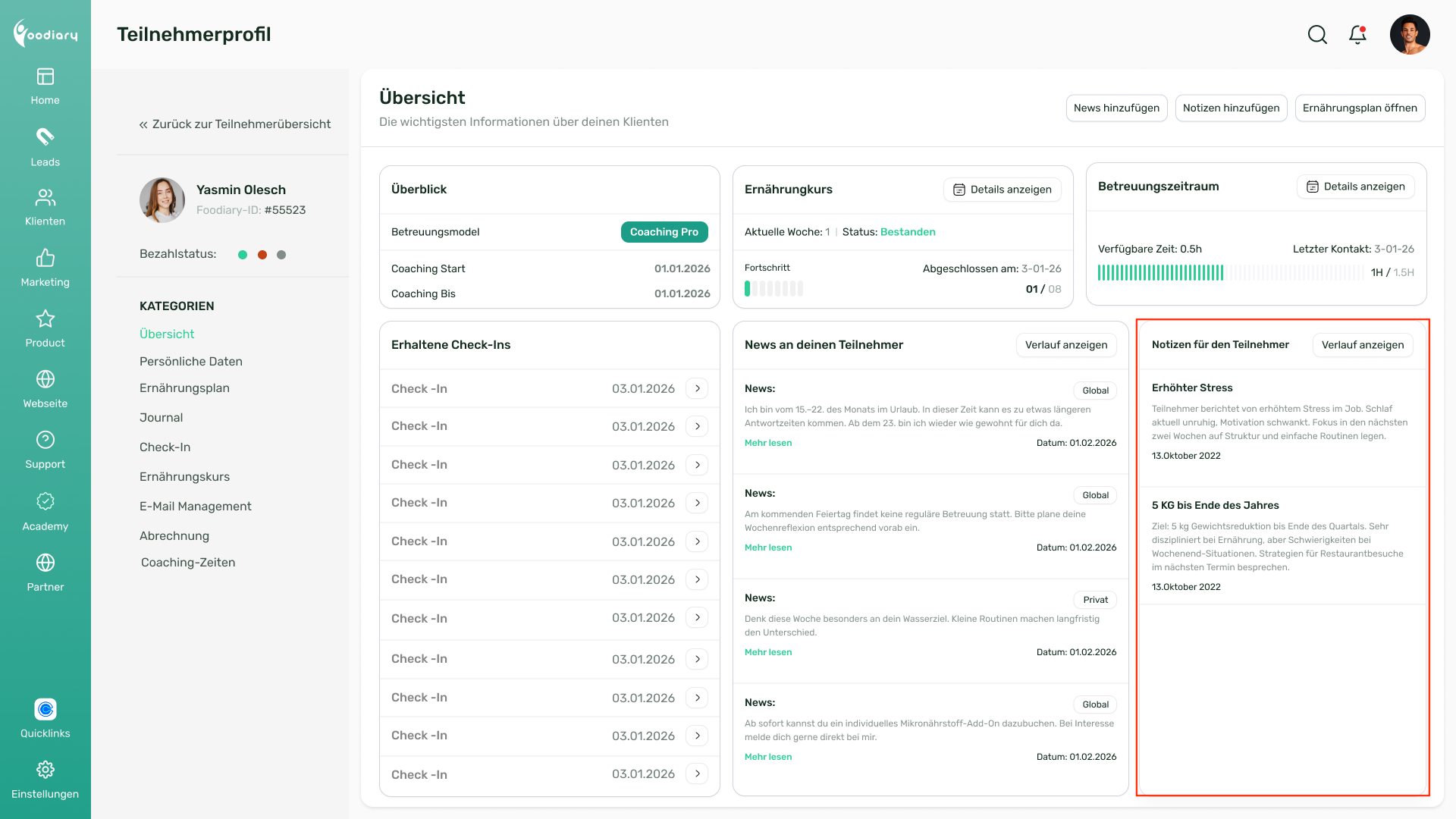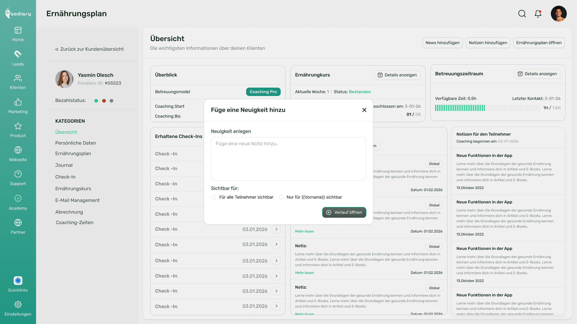Durch den bewussten Einsatz von Notizen und News verbindest du interne Struktur mit aktiver, transparenter Kommunikation – und stärkst so langfristig deine Betreuung.